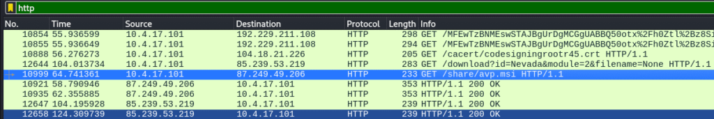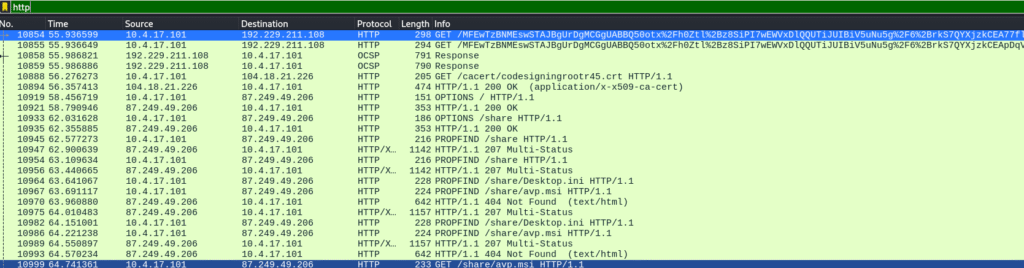 A few packets later, a GET request clearly revealed the suspicious file name.