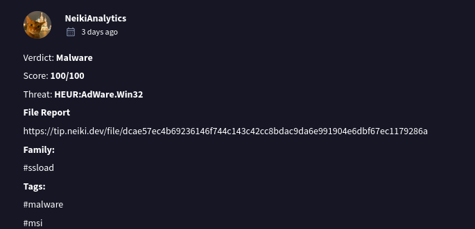 That last one was our target. Uploading it to VirusTotal revealed: